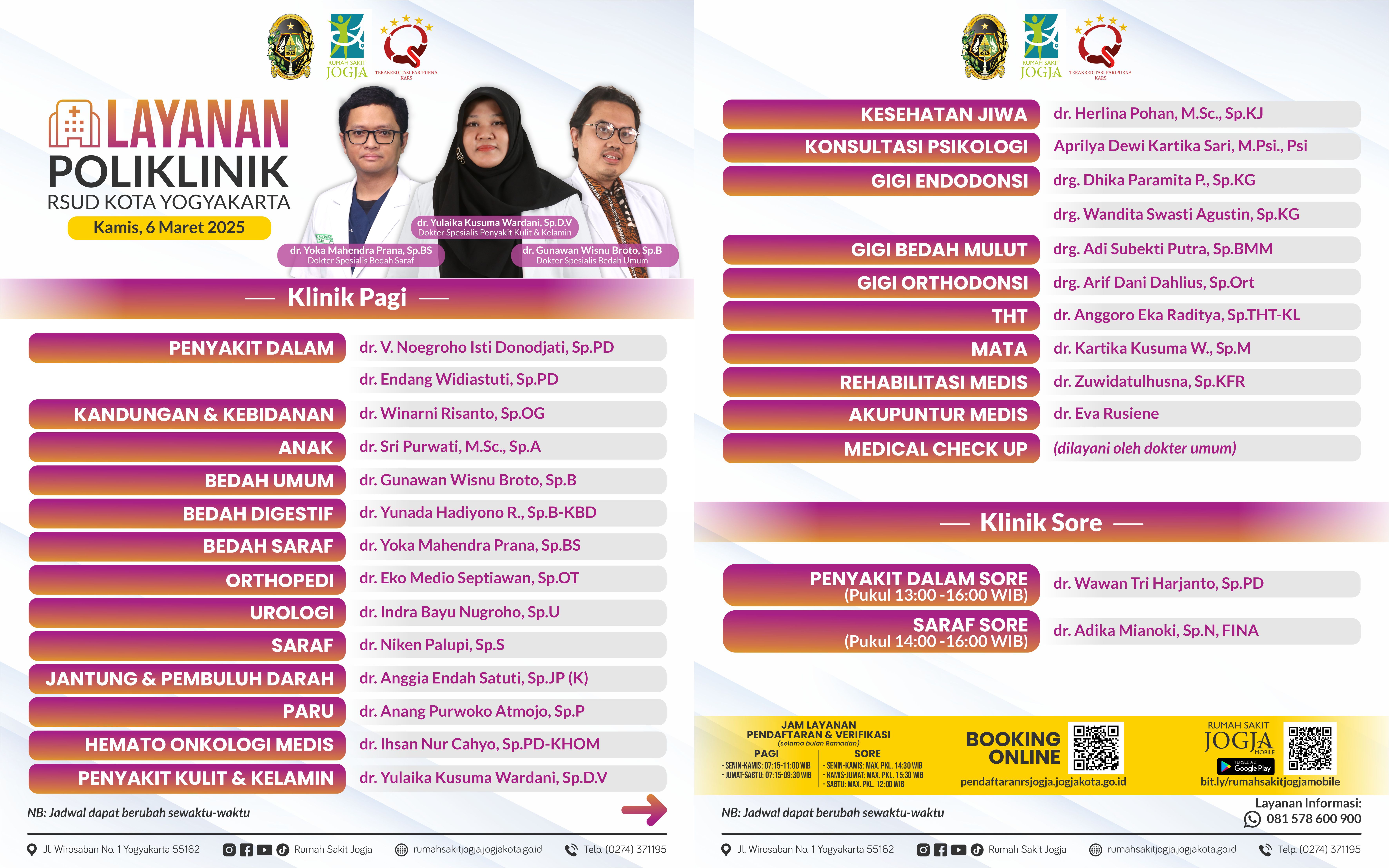 Jadwal Layanan Poliklinik Kamis, 6 Maret 2025