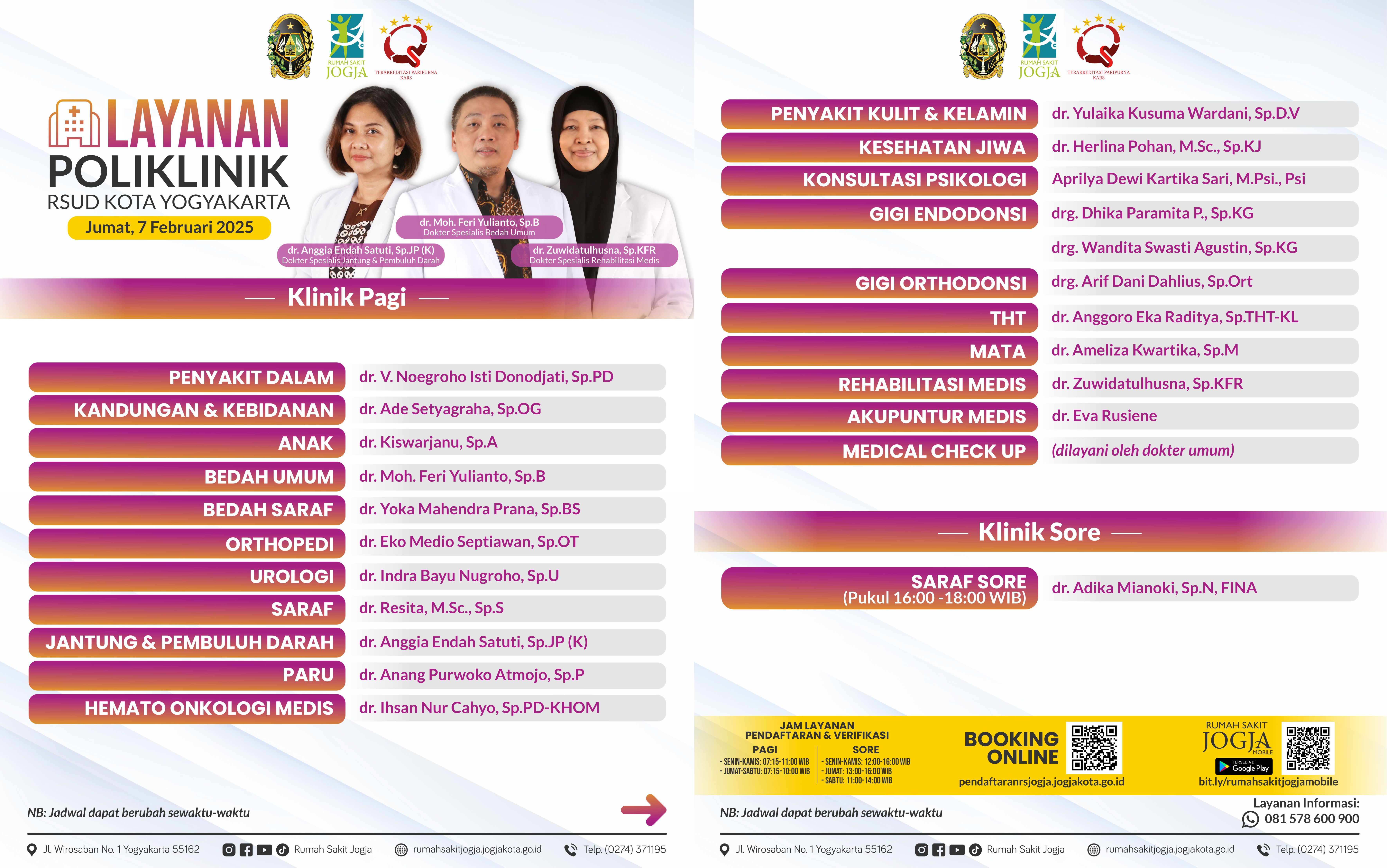 Jadwal Layanan Poliklinik Jumat, 7 Februari 2025