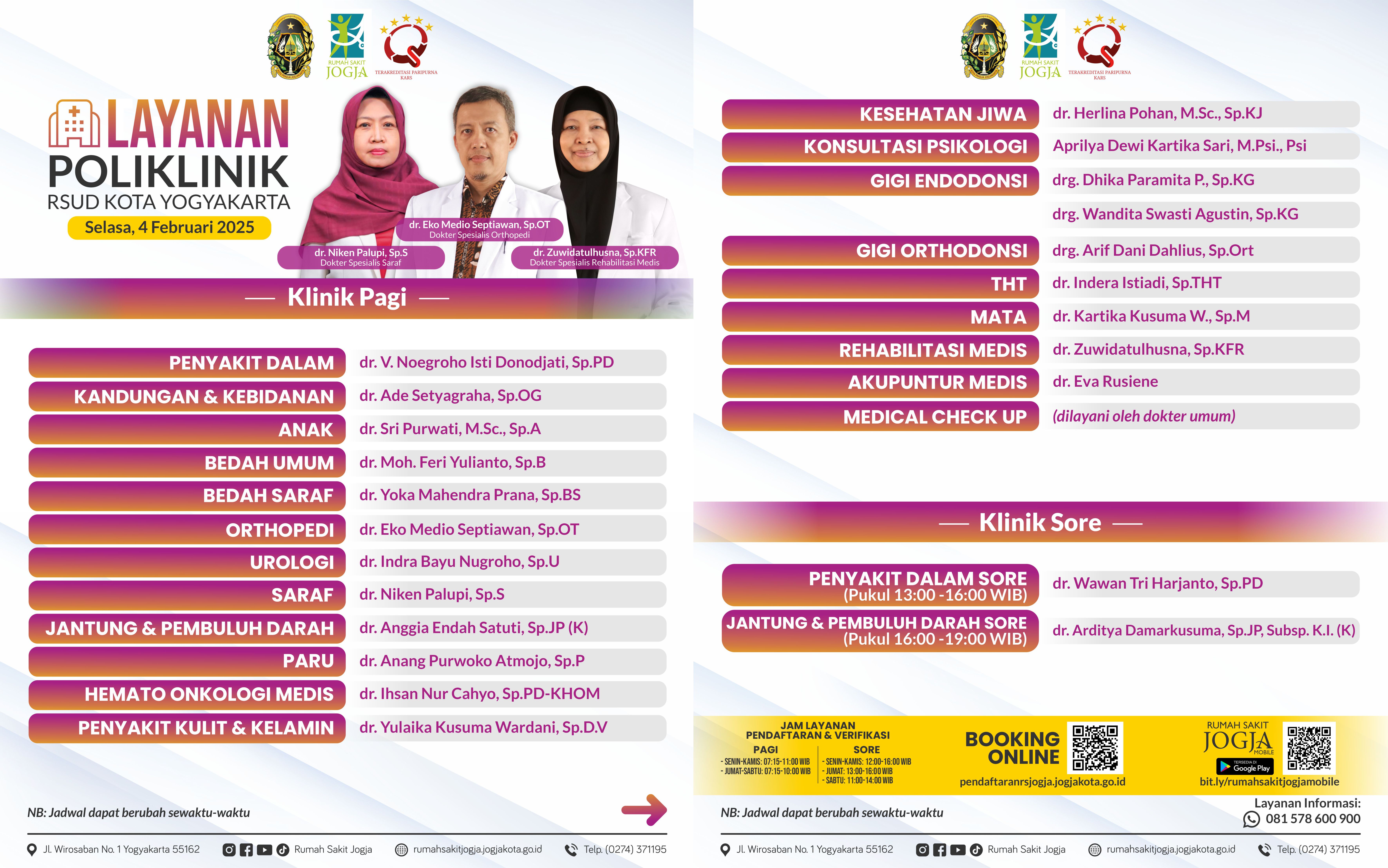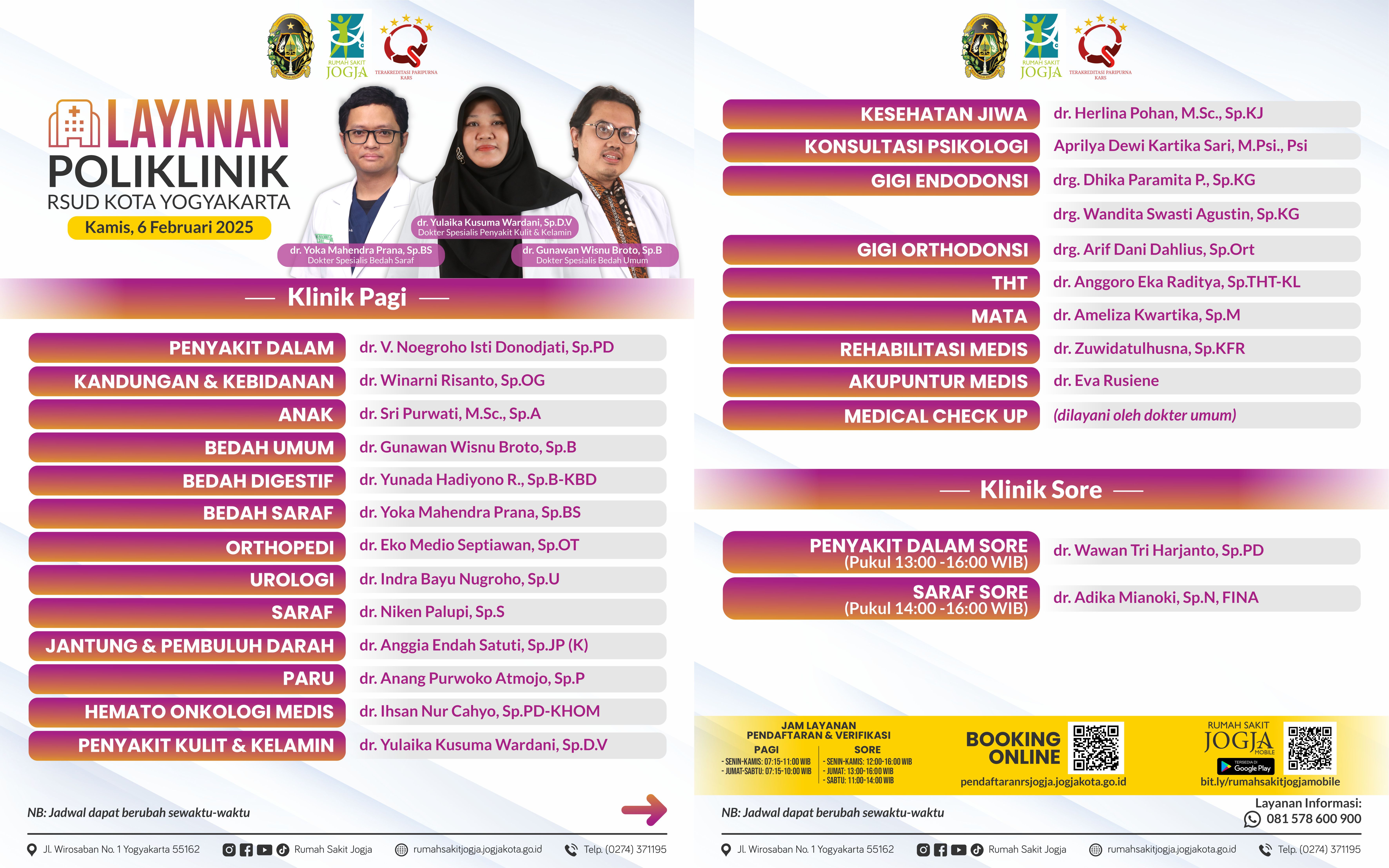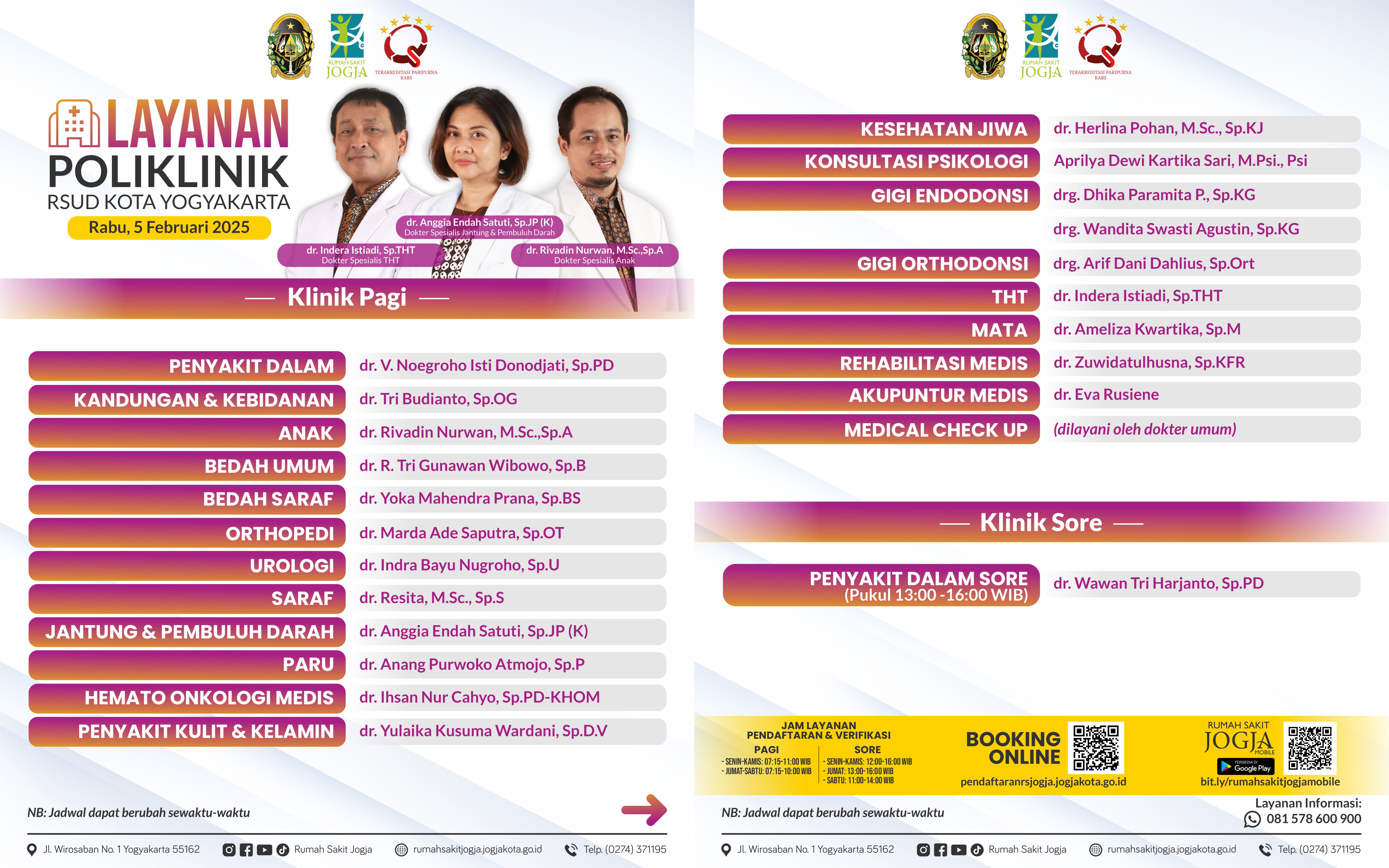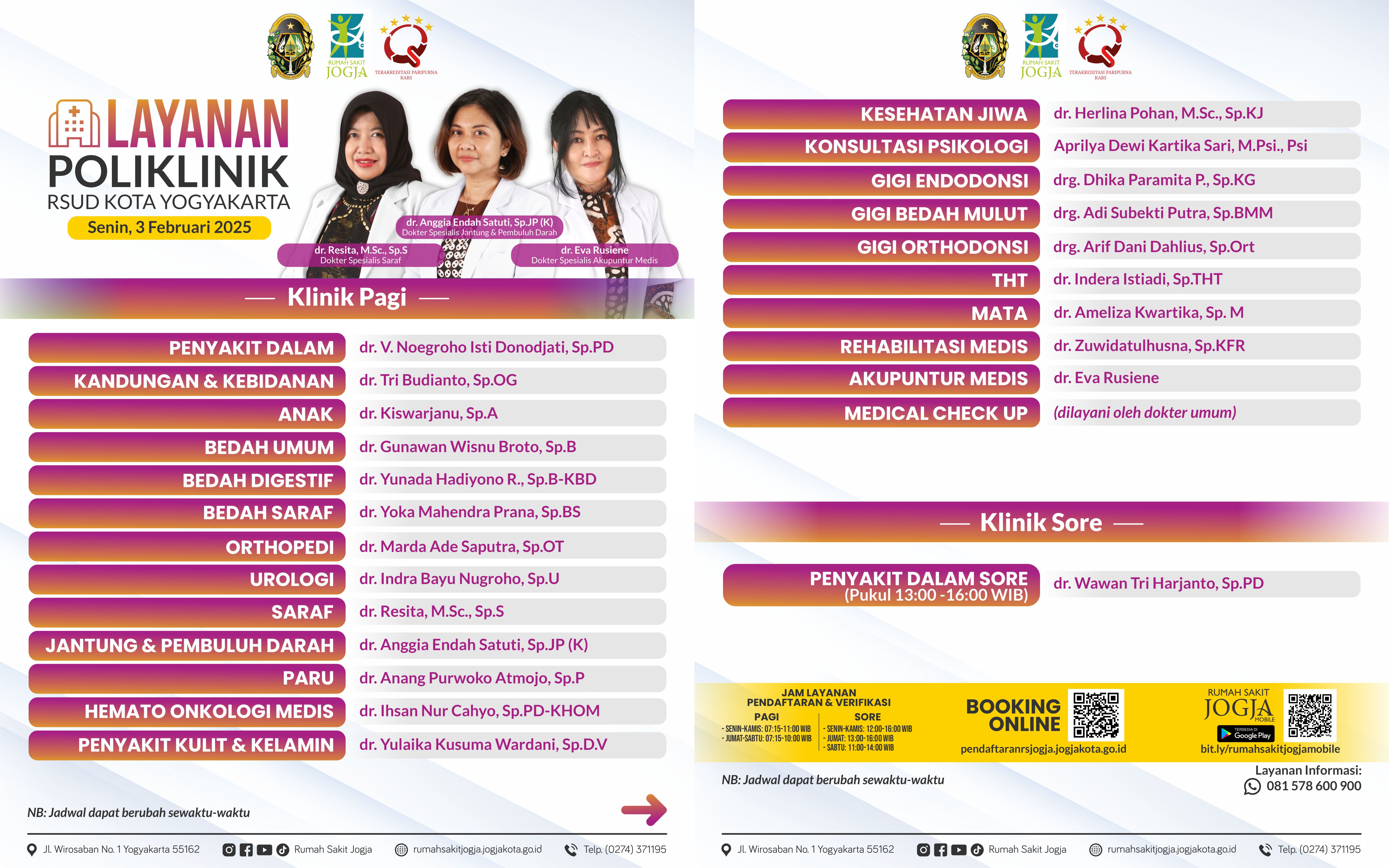 Jadwal Layanan Poliklinik Rabu, 5 Februari 2025