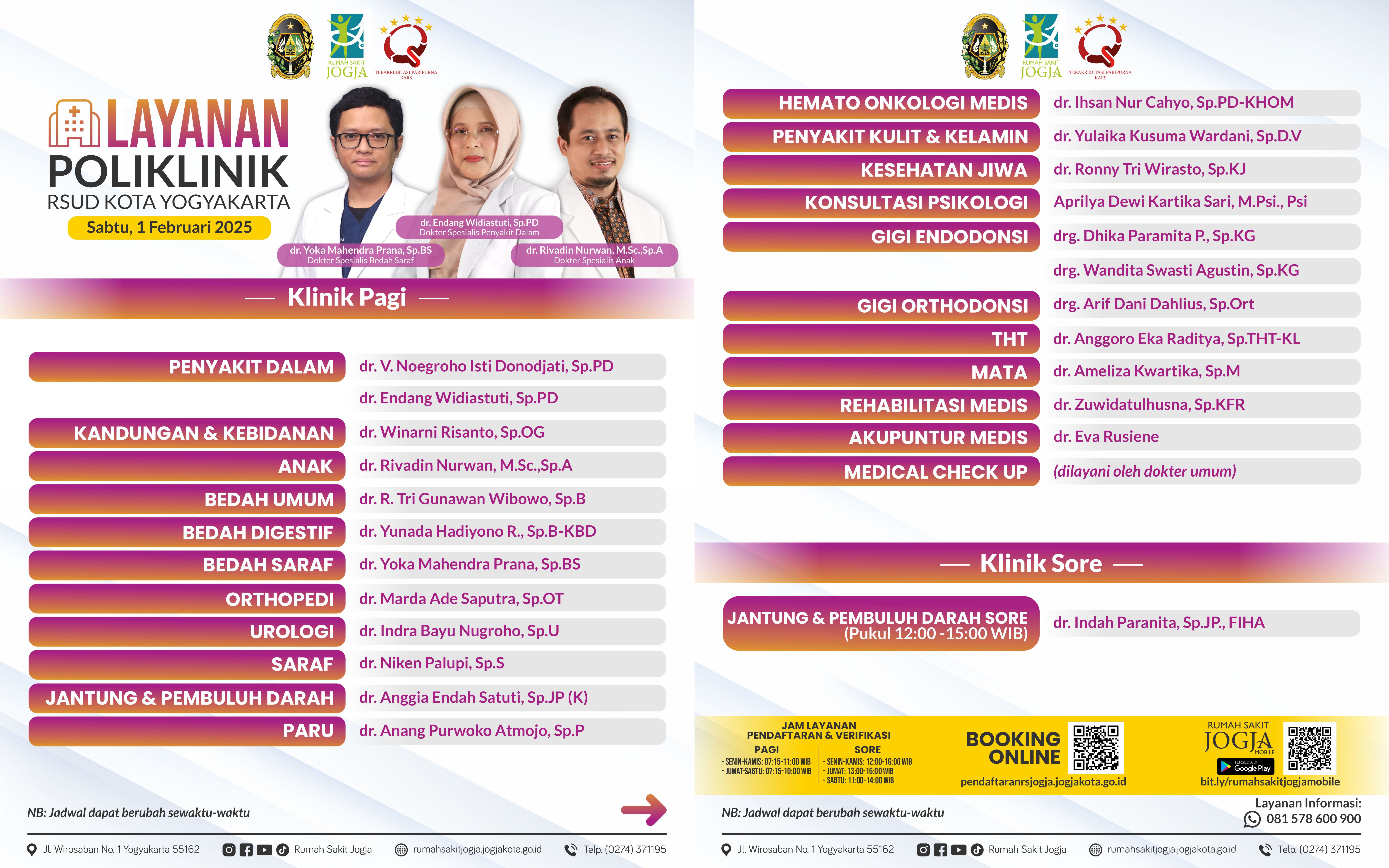 Jadwal Layanan Poliklinik Sabtu, 1 Februari 2025